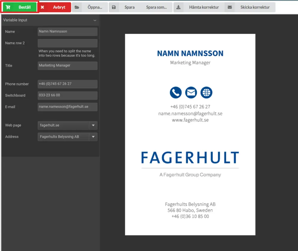 Once you've selected your business card and checked that all the details are correct, click "Order".